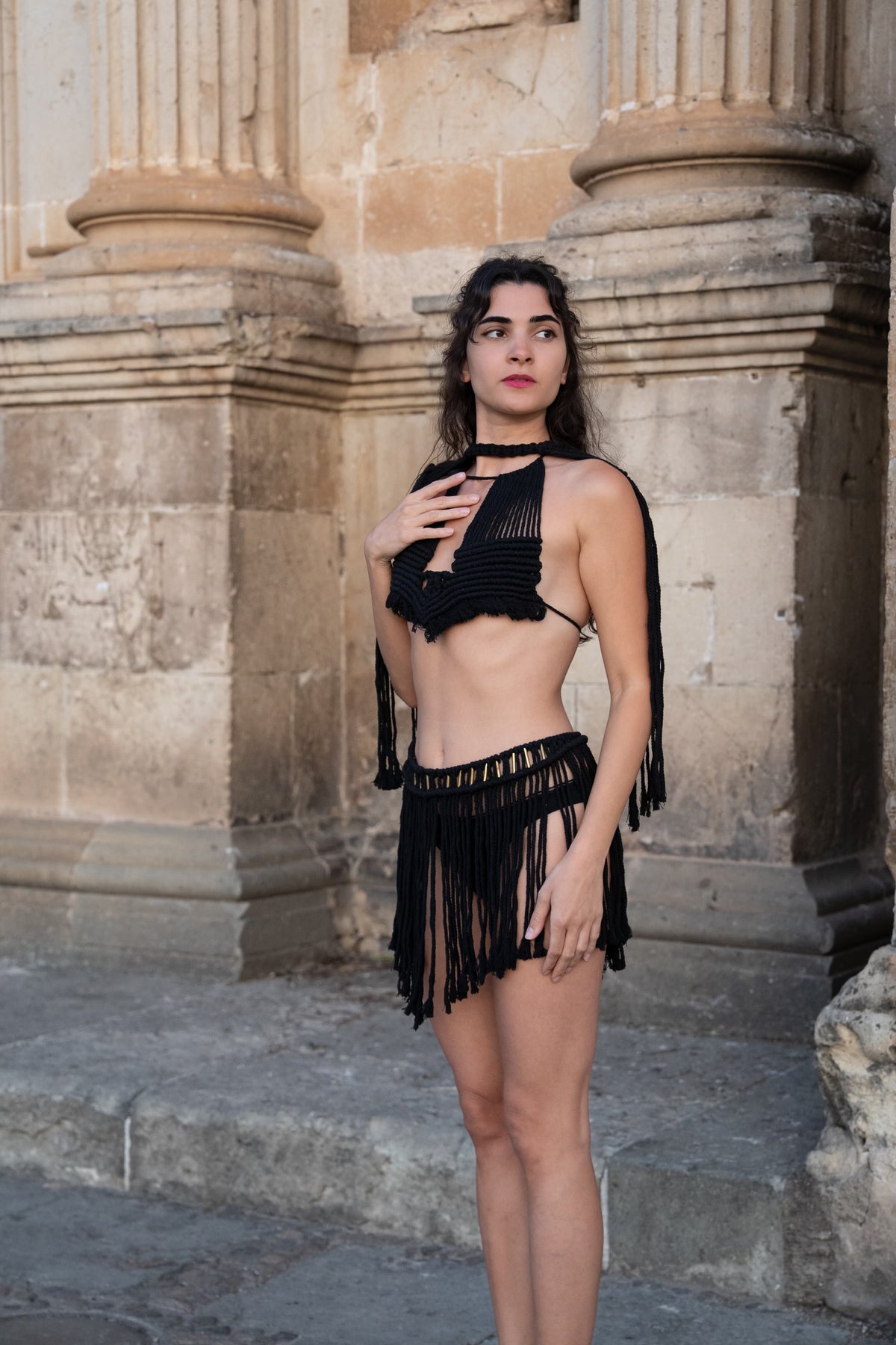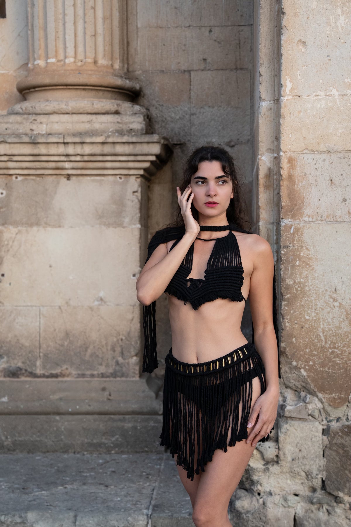 • Handmade 100% macramé top and skirt set